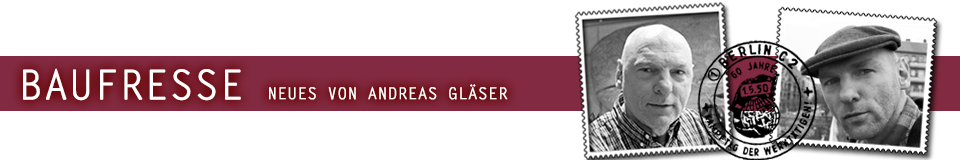 Gläser: Drei bis fünf Leute werden es gewesen sein, die den „Berlin Nordost Blues“ als meinen vorläufigen Zenit einordneten. Nicht mehr arbeiten gehen und berühmt sein, das funktioniert deshalb frühestens, wenn ich tot bin. Lippen-aufspritzen lassen ist jedenfalls noch offensichtlich hässlicher als Arsch-aufspritzen lassen. Muss man sagen. Und jetzt raus mit der Sprache: Deine erste gekaufte LP, dein erstes Konzert? Bei mir war es die LP von Glenn Miller, die mit der langweiligen grauen Hülle, die Aufnahmen in Mono. Ein vermeintlicher Fehlkauf, gleich zum Sammlerstart bin ich unglücklich aus dem Zentrum Warenhaus geschlurft. Doch die Platte ist topp, die habe ich natürlich noch. Mein erstes Konzert: 1980, Stern Combo Meißen im Pionierpark Ernst Thälmann, in der Wuhlheide. Ein Ausflug mit der Schulklasse, im Rahmen unseres FDJ-Studienjahres. Kultur kennenlernen, Lebensfreude tanken, um in die FDJ aufgenommen werden zu können. Die meisten Klassenkameraden sind zeitig abgehauen. Ich fand´s gut, aber nicht sehr gut. Vor dem Konzert war ich alleine in der Alten Försterei. Union gegen Stahl Riesa. 2:0, glaube ich. Die Union-Kinder in meiner Klasse wussten wohl nicht, wo sie spielen. Ich auch nicht, bin erst einmal durch den Wald geirrt. Habe einen Blau-Weißen getroffen, ihn gleich angekumpelt: „Ey, stark, Stahl Riesa!“ Hat er gemeint: „Nee, Hertha BSC. Aber ick nehm dich mit in den Union-Block.“ Ein denkwürdiger Tag, noch heute.
